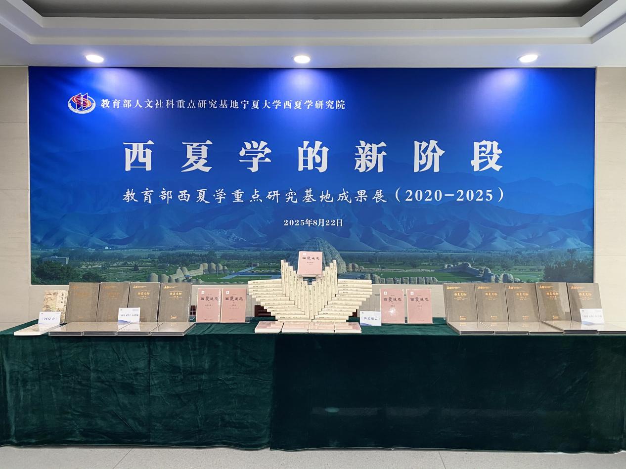 会议期间,教育部人文社科重点研究基地宁夏大学西夏学研究院同步举办《西夏学的新阶段——教育部西夏学重点研究基地成果展》,集中展示了近五年的标志性成果:包括国家社科基金重大招标项目成果《西夏通志》、“冷门绝学”项目阶段性成果《俄藏黑水城出土雕塑》、入选国家社科基金成果文库著作《西夏文〈孙子兵法三注〉研究》、国家社科基金特别委托项目成果的《西夏文物》综合编和石窟编、中俄西夏学联合研究项目成果《俄藏黑水城出土汉文文献释录》、仿古写真《西夏文献丛刊》,以及《西夏学文库》《百年西夏学文萃》等系列标志性著作,以及“读懂中国”系列之“读懂西夏”外译出版工程之《西夏艺术史》《神秘西夏》《说西夏》《〈天盛律令〉研究》《西夏与周边民族关系》《他者的视野——蒙藏史籍中的西夏》等翻译成果。
