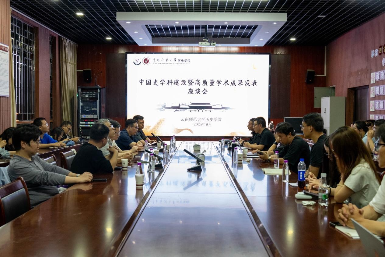 为促进学院高质量学科建设发展,交流学术研究成果,云南师范大学历史学院于2025年9月21日晚,举行了“云南师范大学中国史学科建设及高质量学术成果发表”座谈会。与会嘉宾包括中国社会科学院古代史研究所明史研究室主任、《中国史研究》副主编解扬研究员、西北大学历史学院副院长曹循教授、安徽师范大学历史学院副院长丁修真教授、《民俗研究》副主编龙圣教授、《文史哲》编辑部副主任孙齐教授、《中国史研究动态》副主编任会斌研究员等。历史学院院长黄海涛教授,教师及学生代表参与座谈会,会议由历史学院副院长张永帅教授主持。